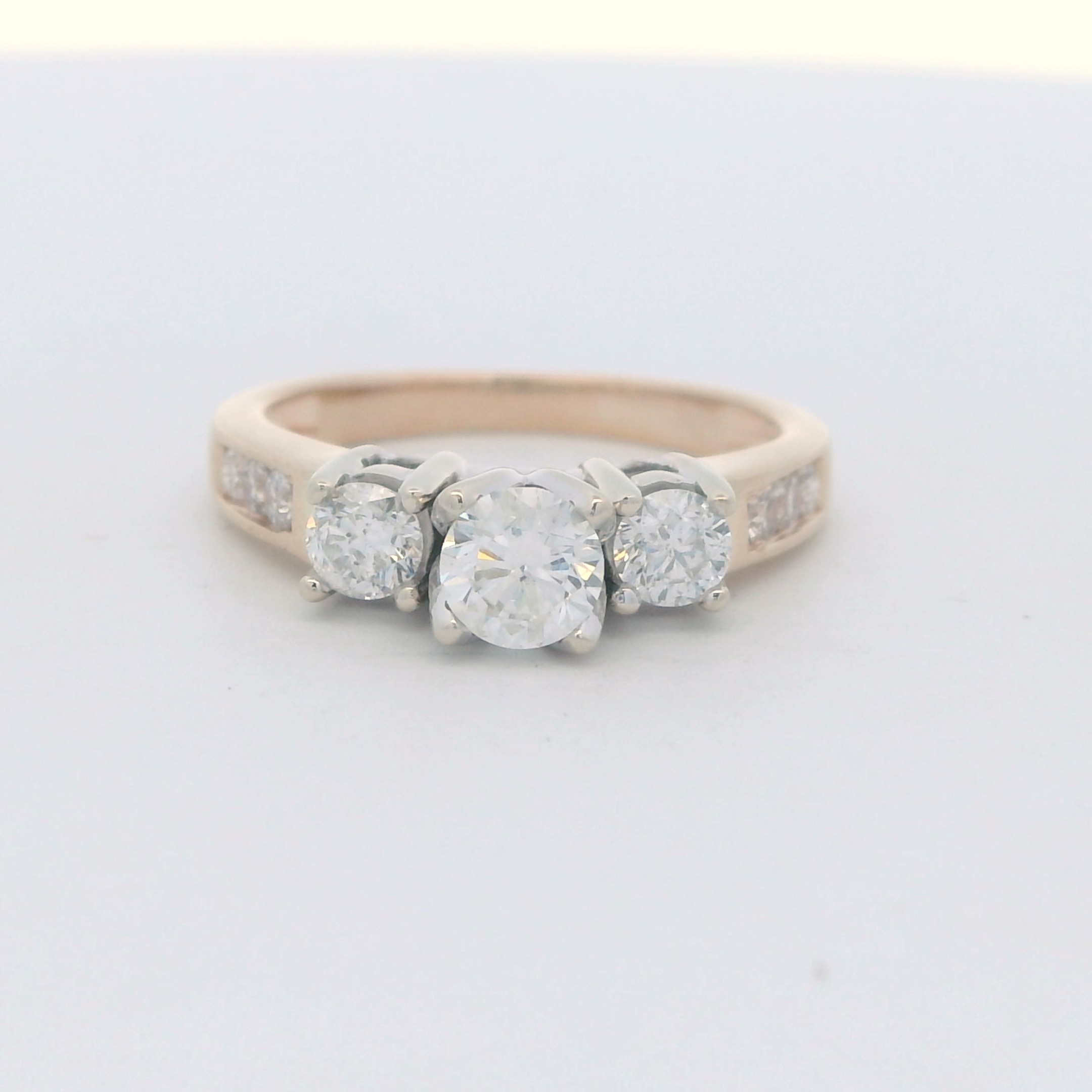 Exquisite multistone ring crafted in luminous gold, showcasing a trio of brilliant round cut diamonds. This timeless piece is the epitome of refined elegance, offering a harmonious blend of classic design and scintillating sparkle.