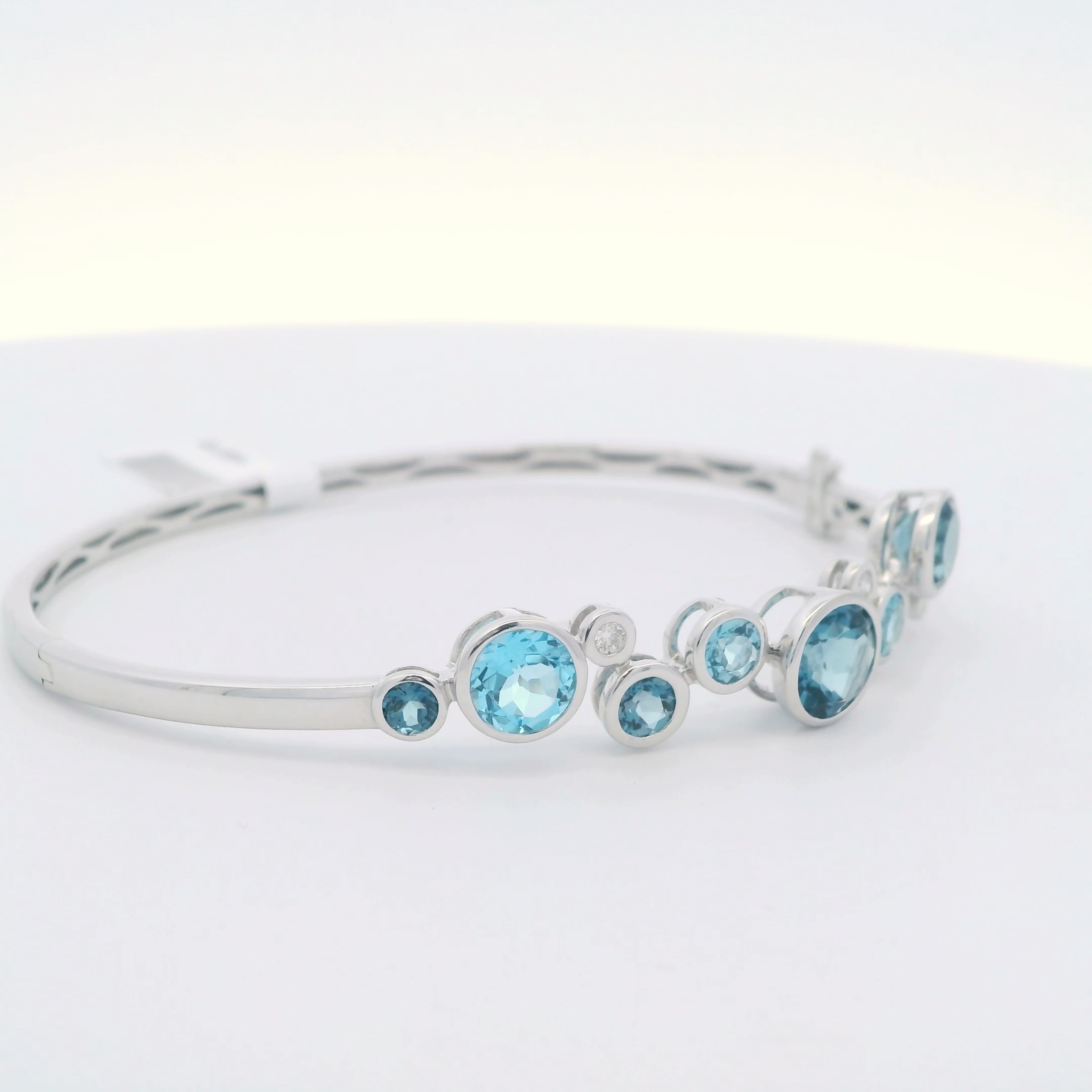 Embrace oceanic serenity with this exquisite bangle. Crafted from lustrous white gold, it features a delightful array of round brilliant-cut blue topaz. Their vivid blue hue and exceptional transparency capture the tranquil essence of the sea, enhanced by superior polish and symmetry. This piece radiates sophisticated elegance, perfect for accentuating any ensemble.