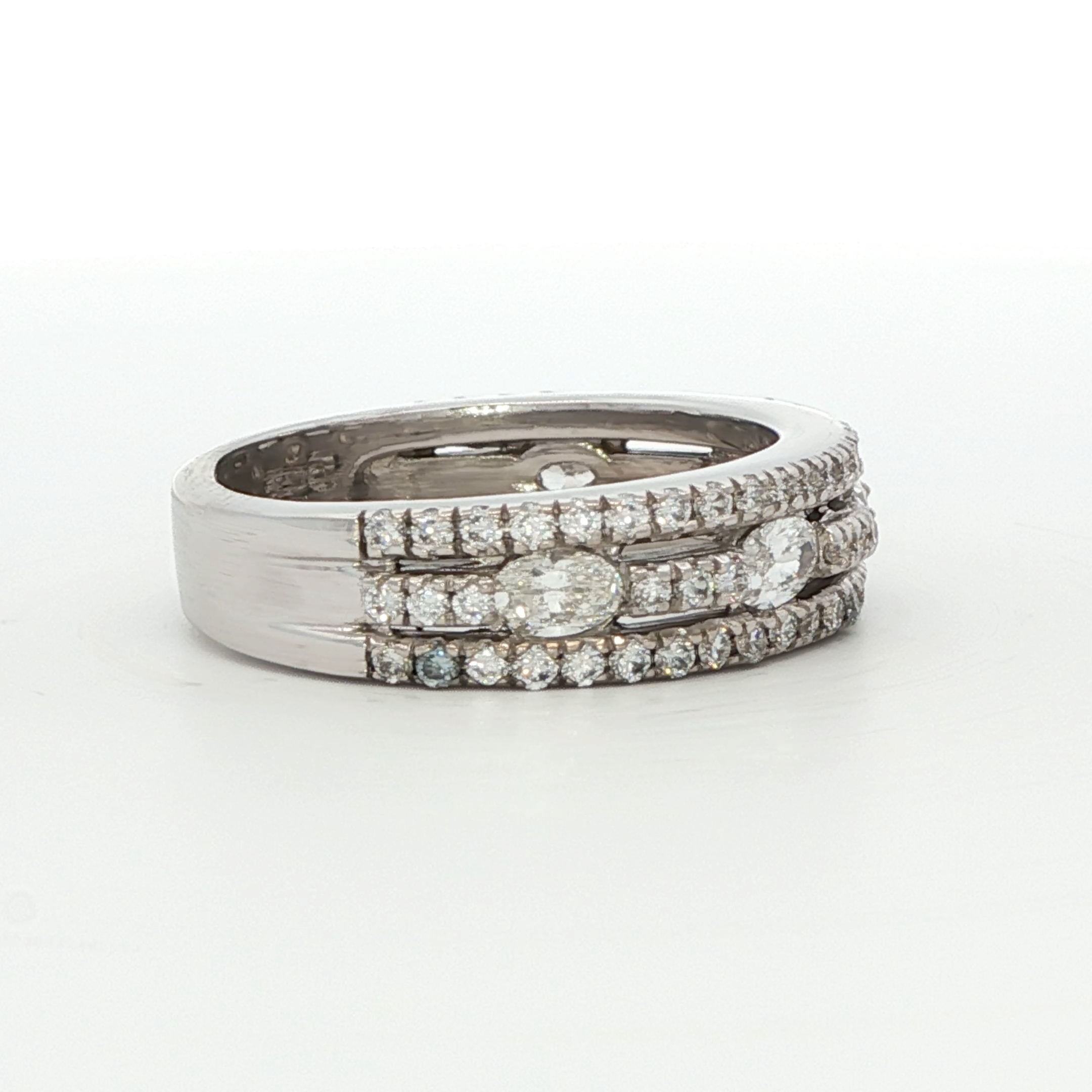Indulge in timeless elegance with this exquisite white gold band. This ring showcases brilliant oval and round cut diamonds, symbolizing enduring love and commitment. A classic choice, this band ring adds a touch of sophistication to any ensemble.