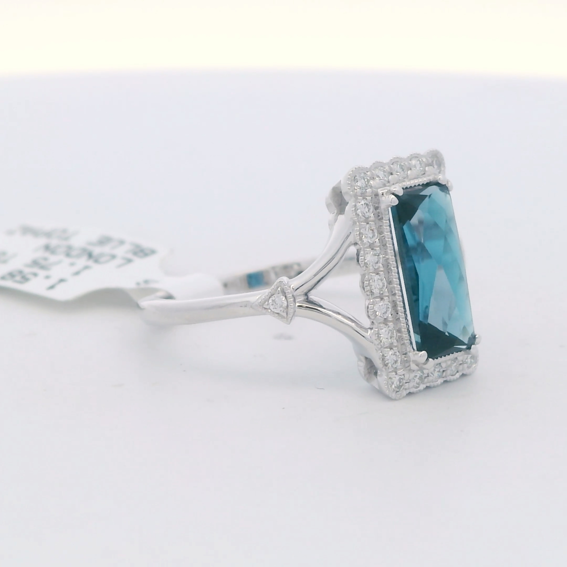 Ladies London Blue Topaz & Diamond Halo Ring