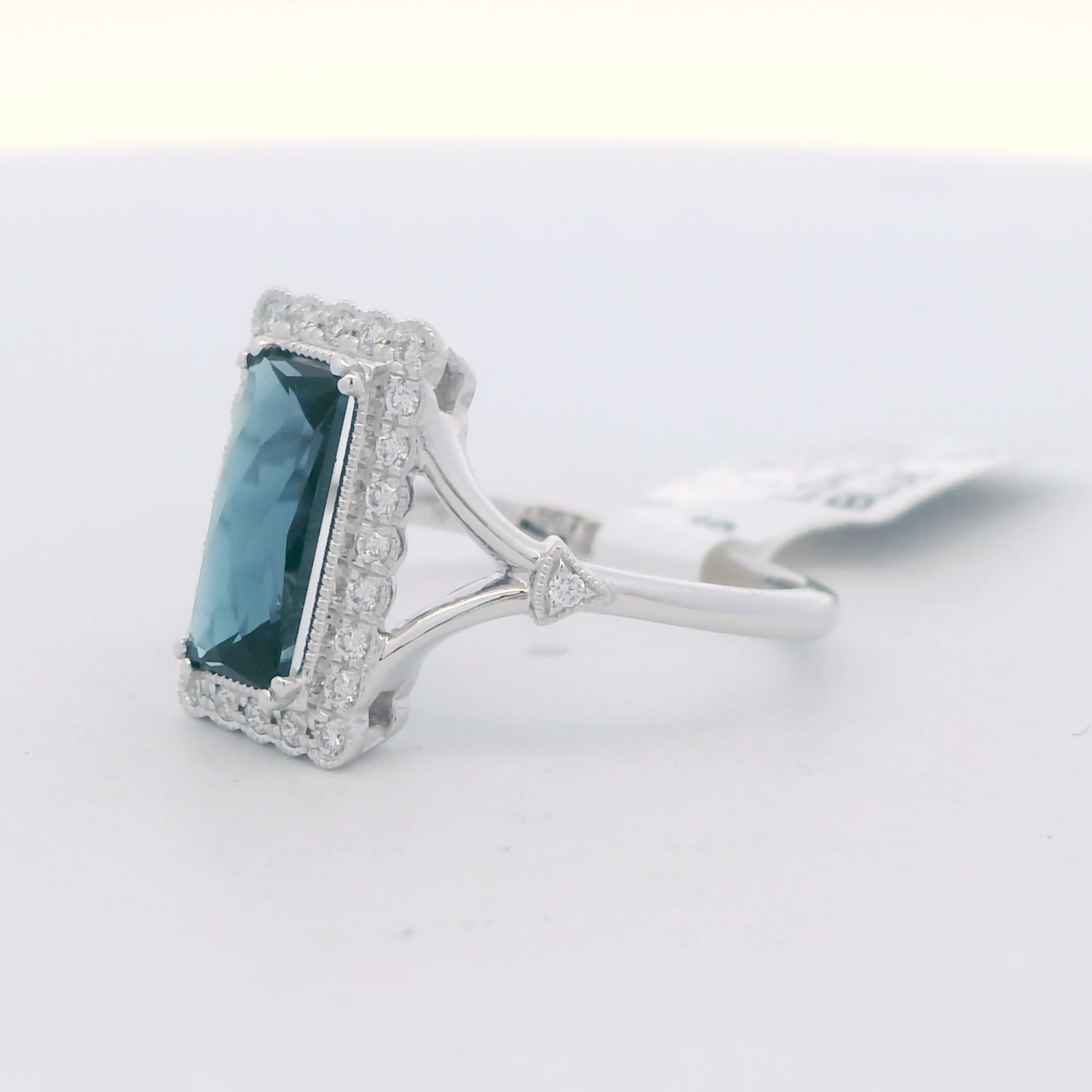 Elevate your style with this exquisite multistone ring, expertly crafted in lustrous white gold. The centerpiece is a captivating London blue topaz, boasting a mesmerizing bluish green hue. A true statement piece that exudes sophistication and charm.