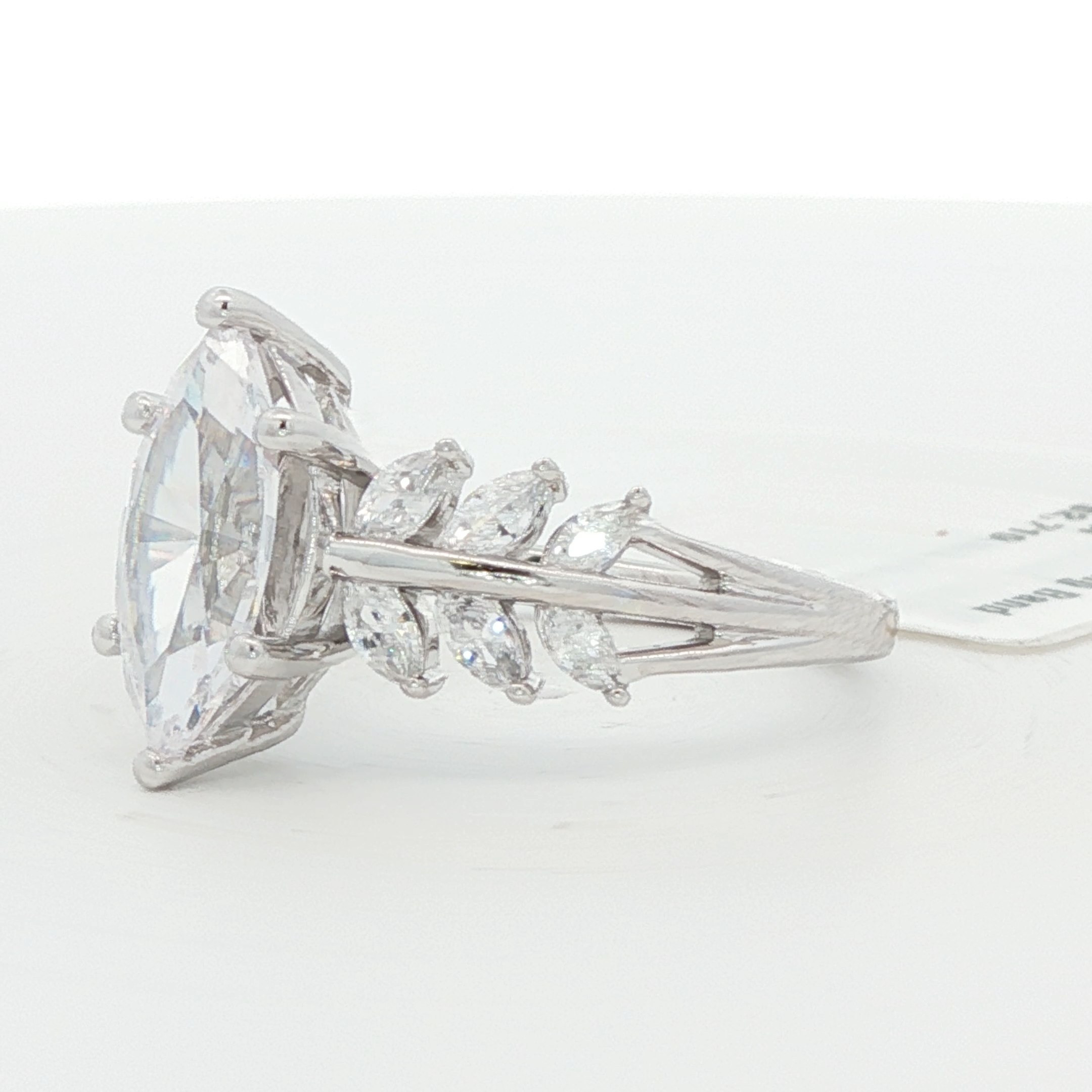 Exquisite white gold engagement ring mounting for brilliant-cut marquise diamond held by six prongs. The ring showcases a sophisticated nature-inspired design with two rows of smaller marquise diamonds arranged in a leaf-like pattern, offering excellent clarity and brilliant light performance.