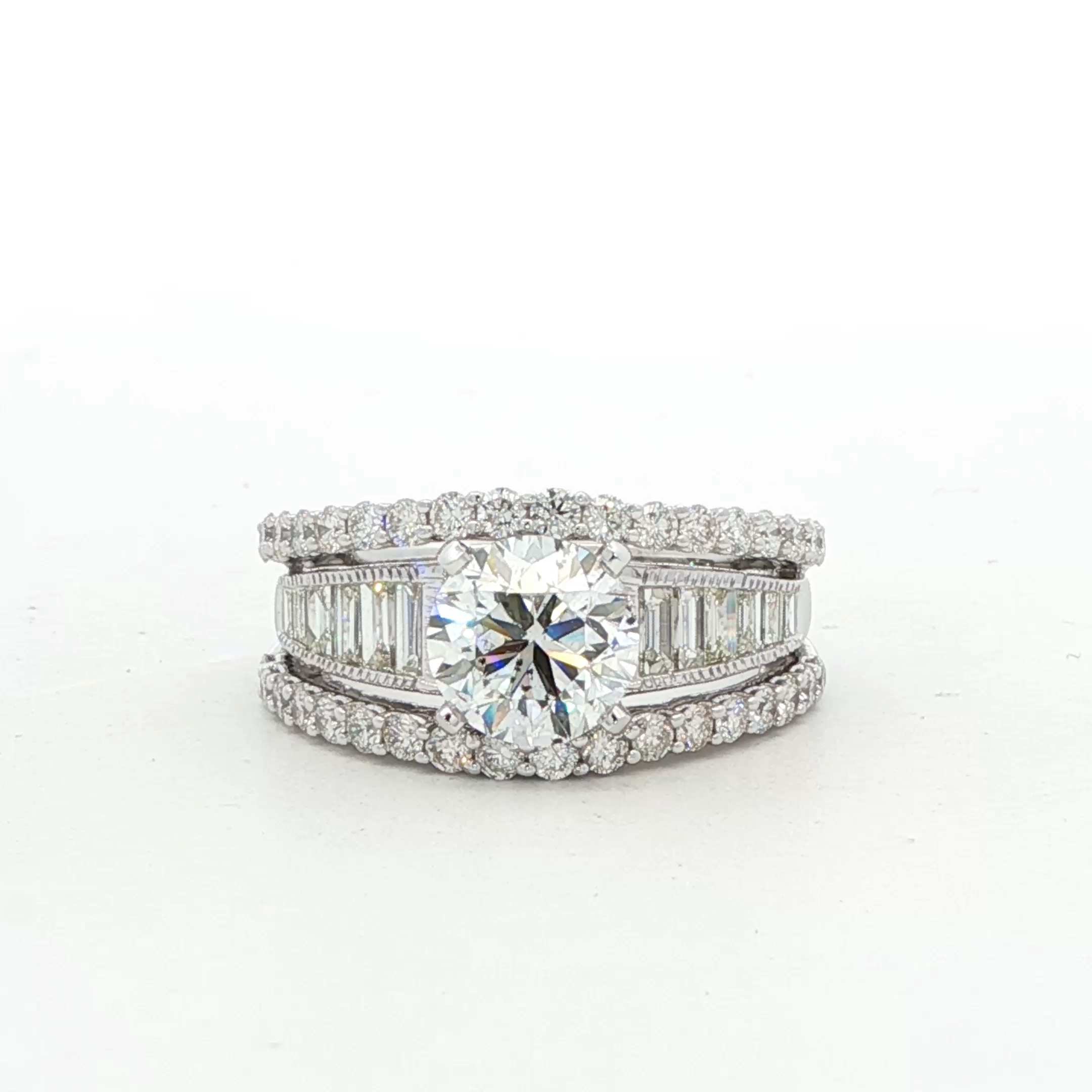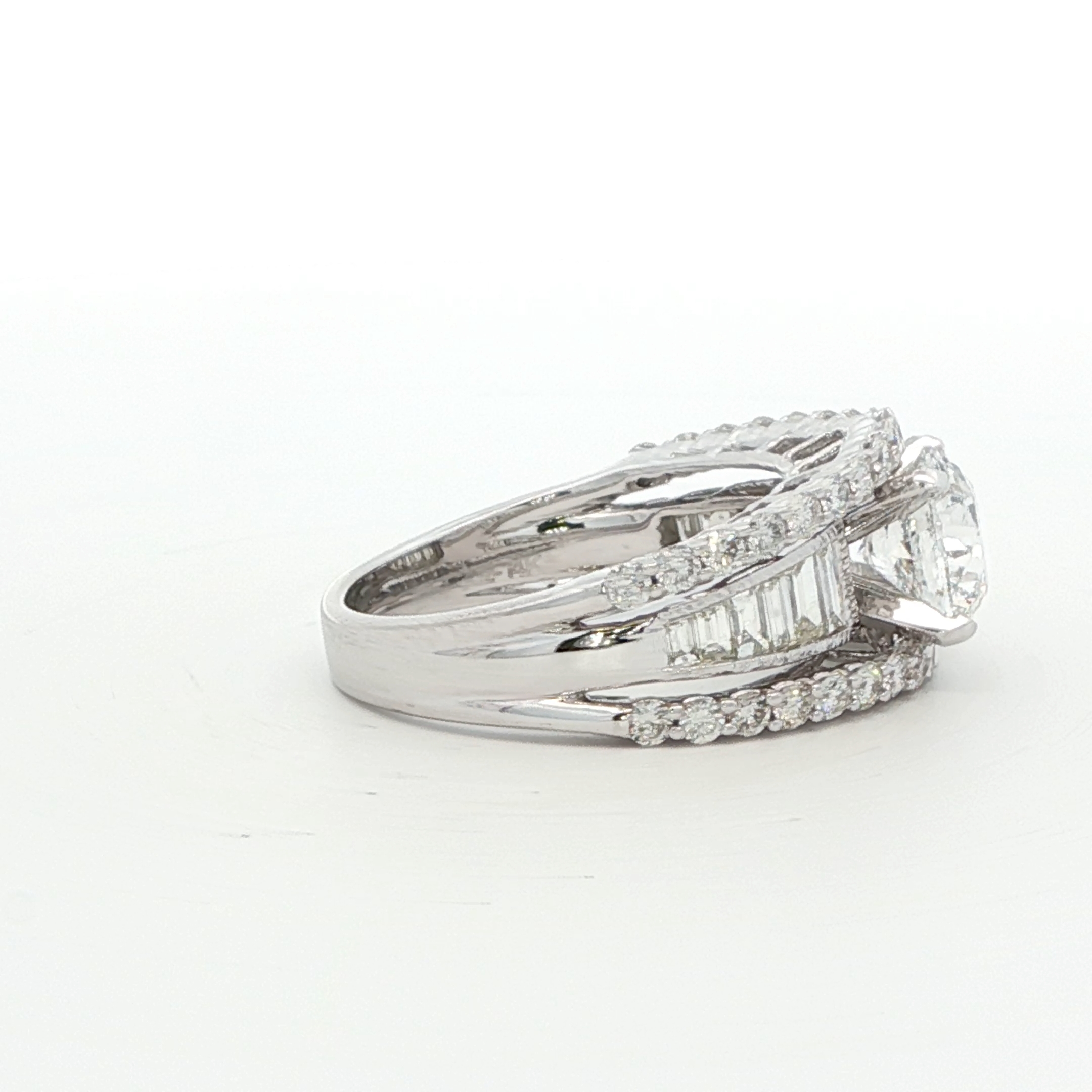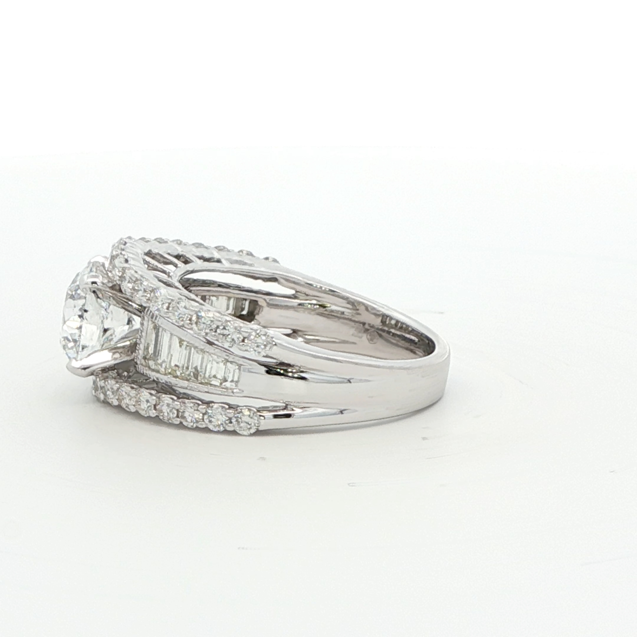 Elevate your elegance with this stunning engagement ring, expertly crafted in lustrous white gold. The timeless design features a brilliant round cut diamond as the focal point. Its white gold hue adds a touch of sophistication, making it a perfect statement piece for any occasion.