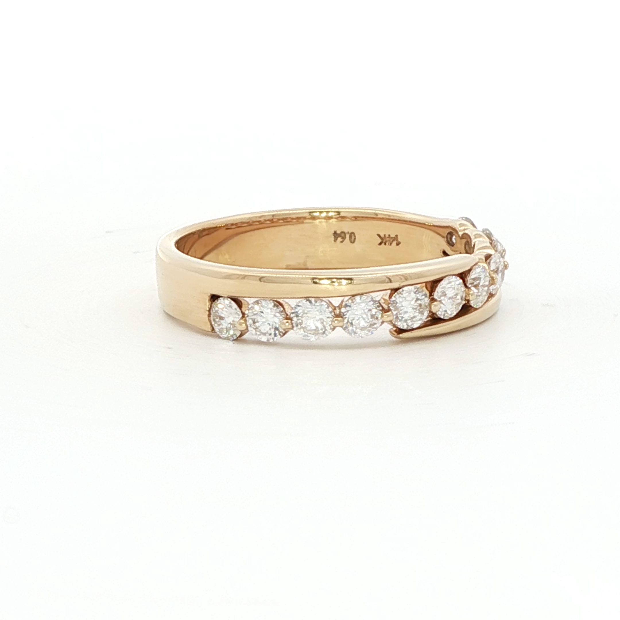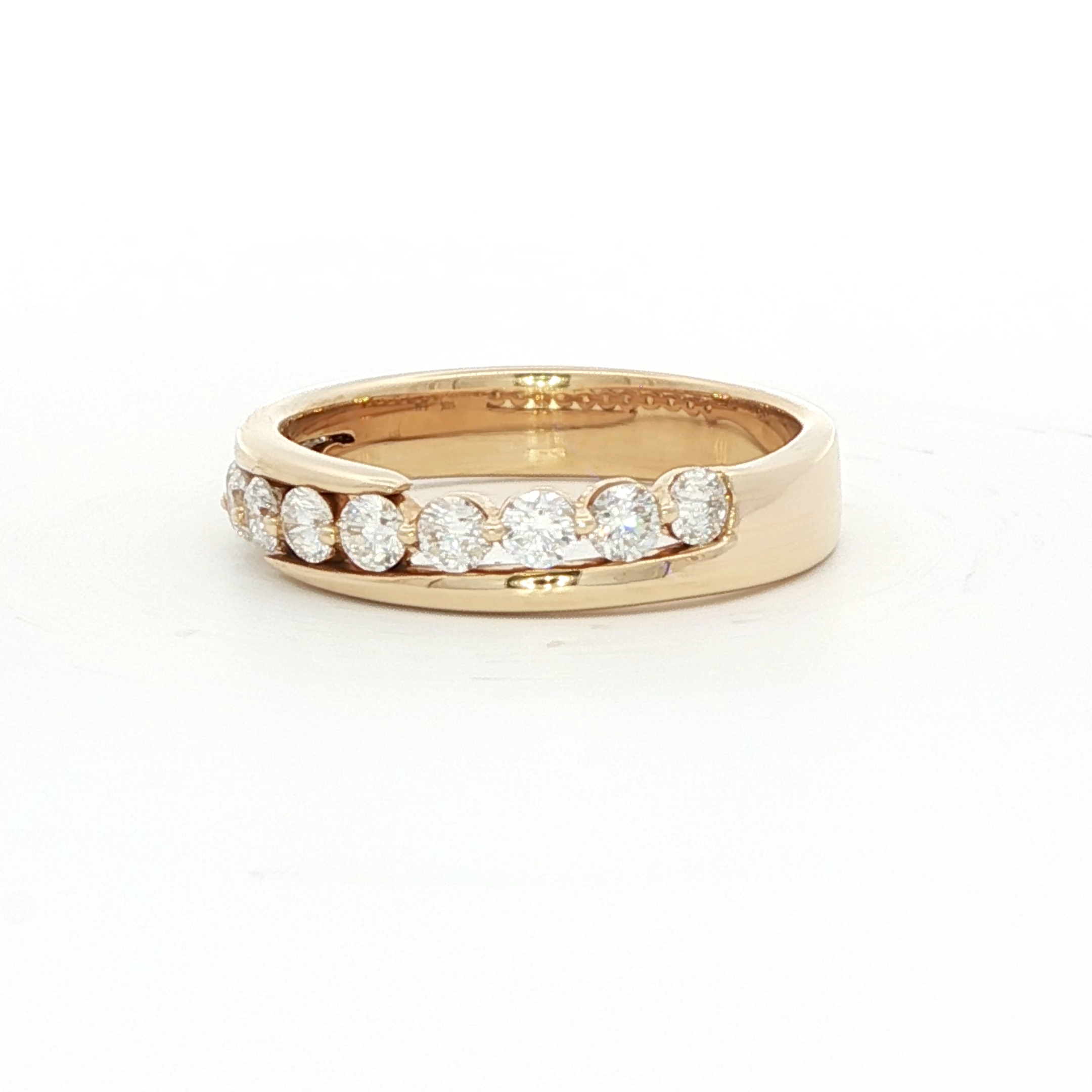 Elevate your style with this exquisite multi-diamond ring, crafted in alluring gold. The ring showcases a series of round brilliant cut diamonds, set to capture and reflect light with every movement. A timeless piece that combines classic elegance with modern design.