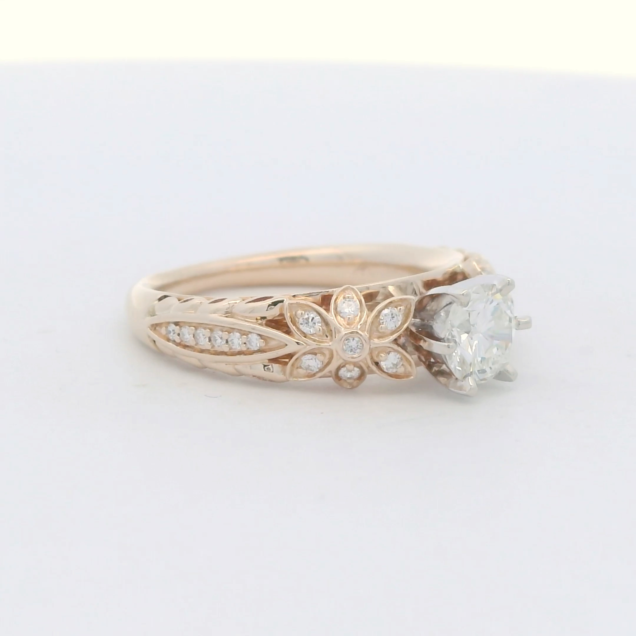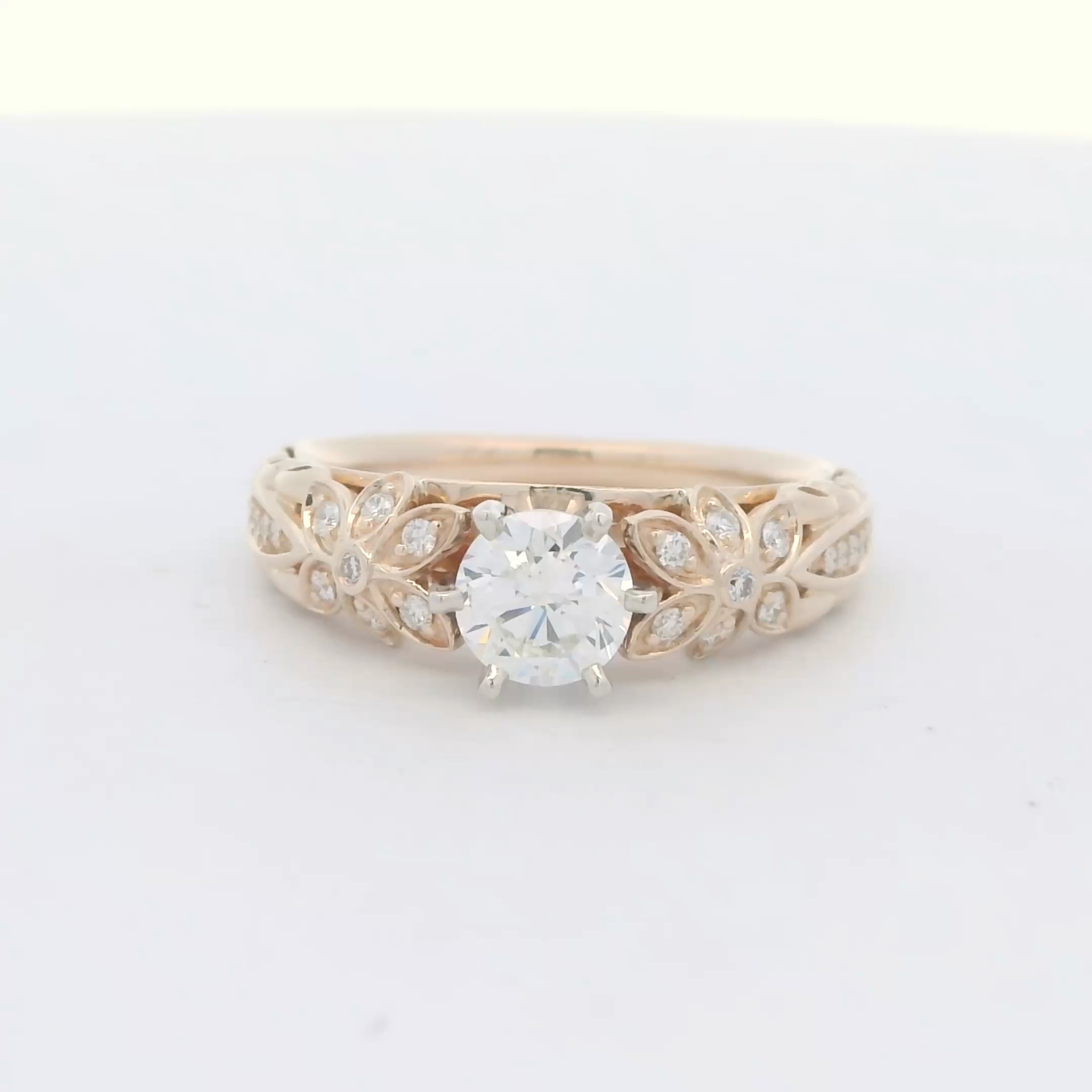 Crafted in luminous gold, this engagement ring showcases a brilliant cut diamond, exhibiting remarkable fire and brilliance. The delicate floral design adds a touch of romance and sophistication, making it a timeless symbol of your everlasting love. A perfect representation of commitment and refined elegance.