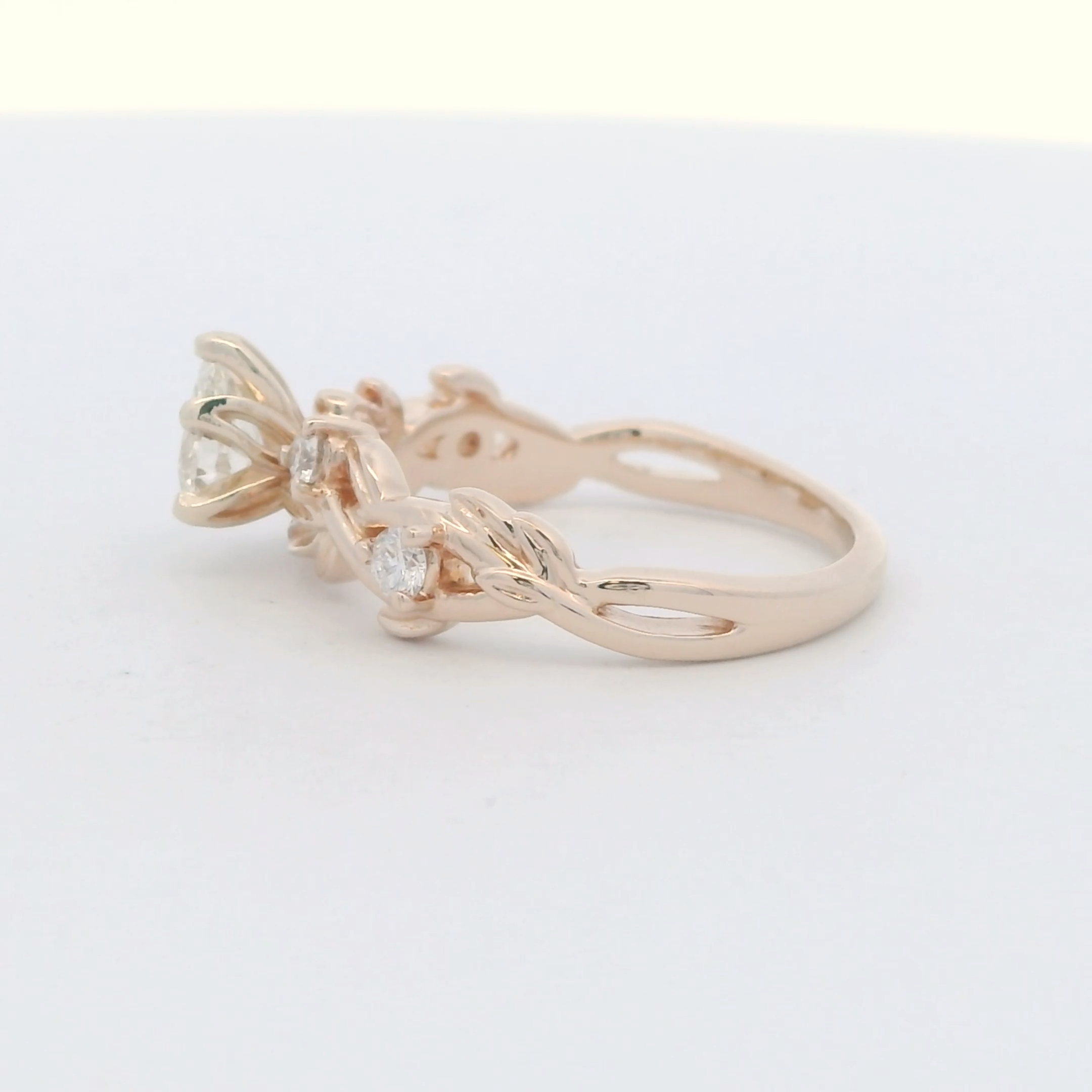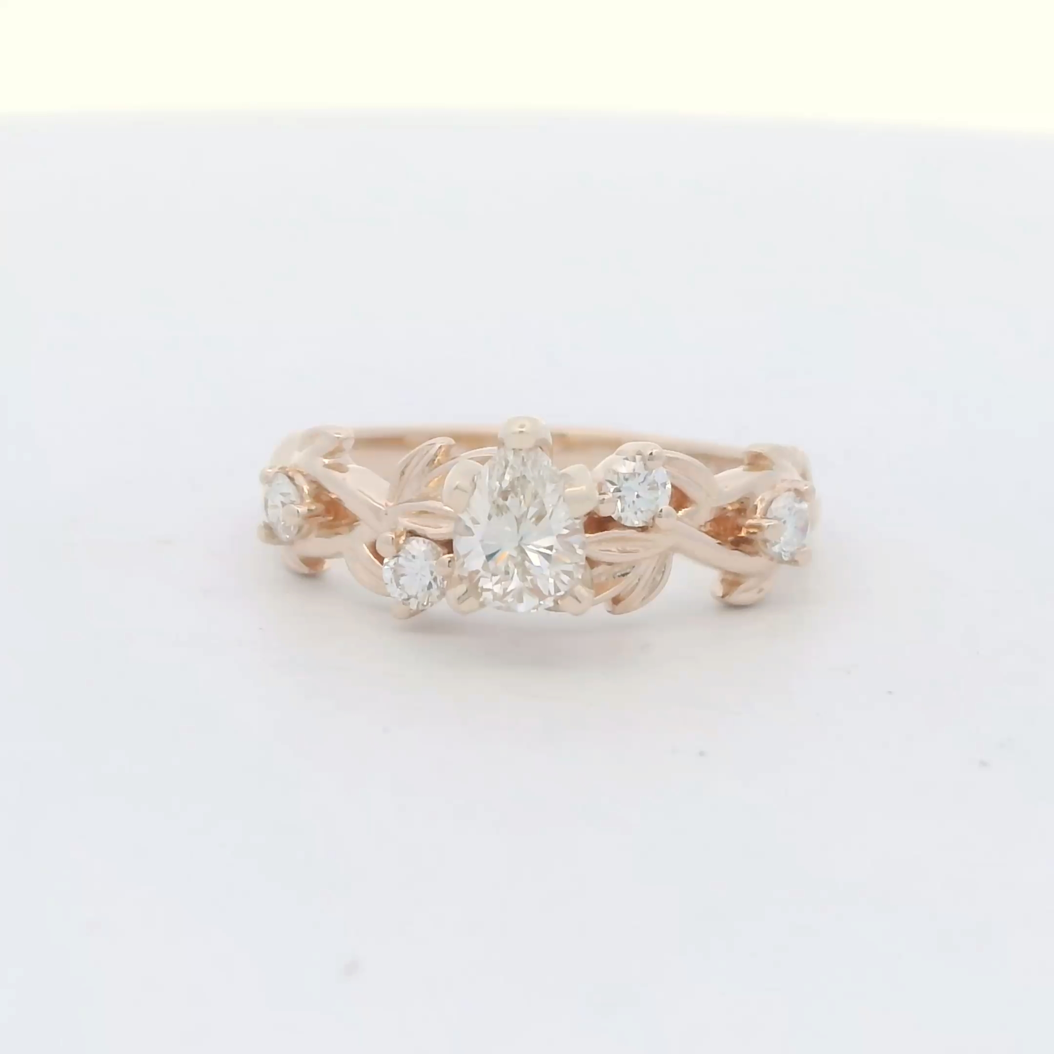 Adorn your finger with this enchanting gold multistone ring, featuring a captivating pear-shaped diamond as its centerpiece. The brilliant-cut main diamond is complemented by smaller accent diamonds set amidst a delicate, nature-inspired design, making this ring a whimsical and sophisticated statement piece.