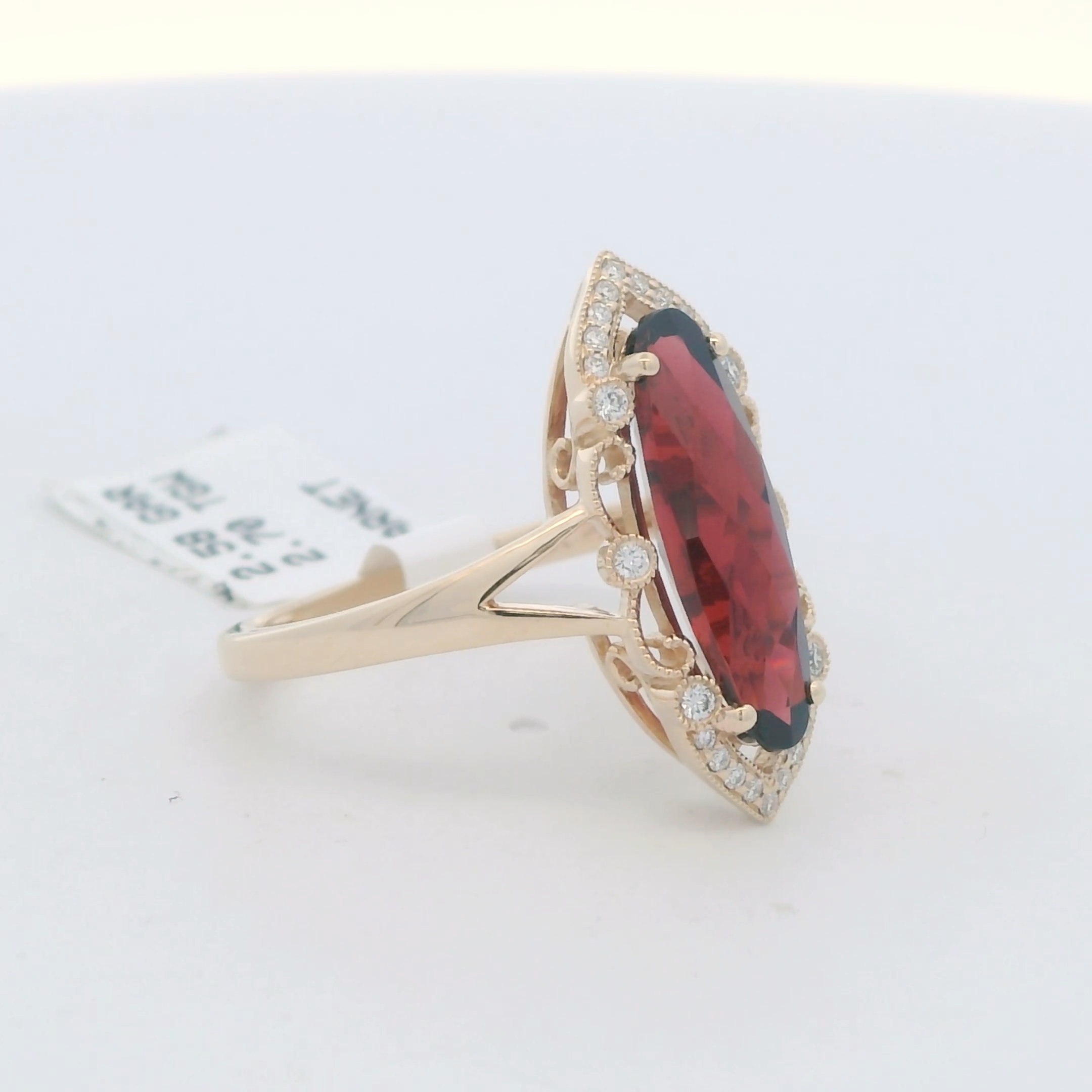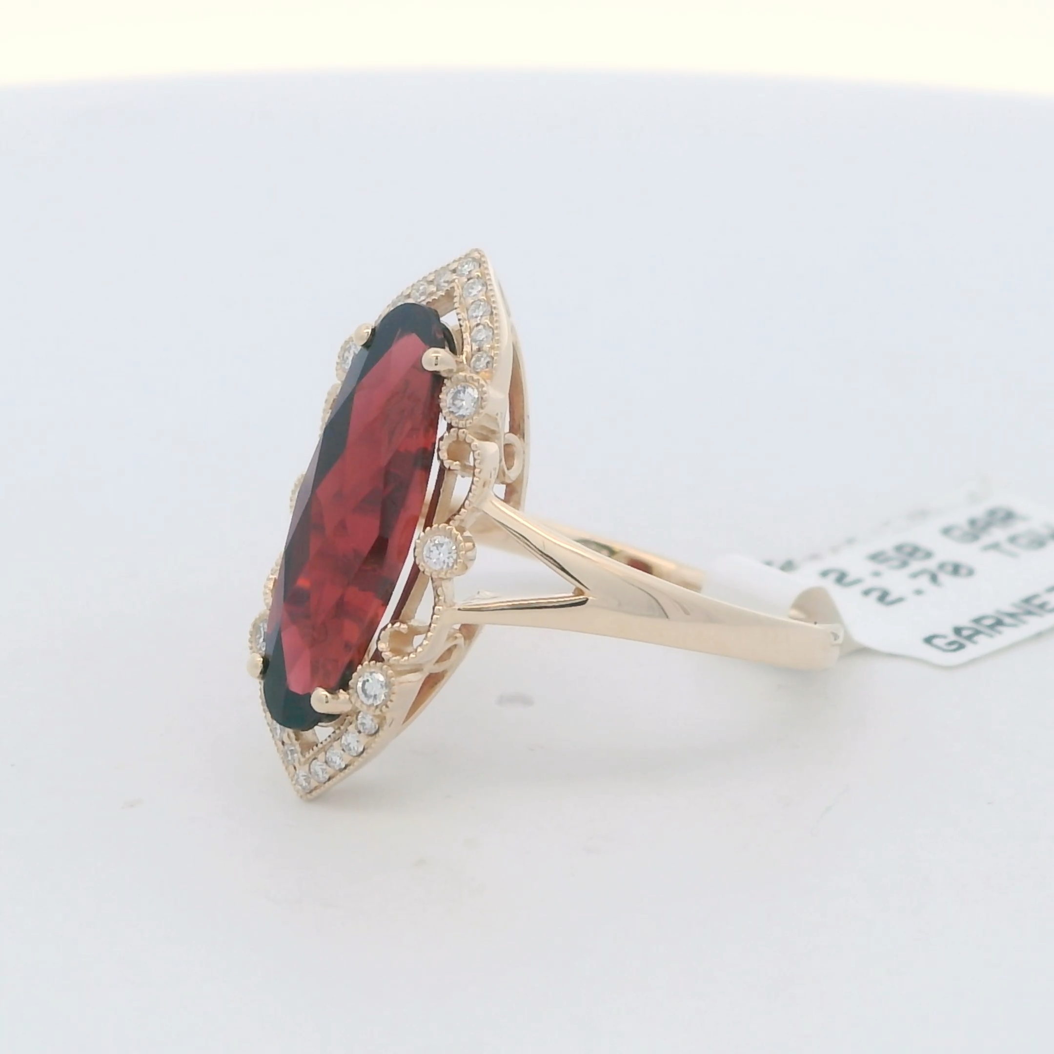 Radiate timeless elegance with this stunning women’s ring. Crafted in yellow gold, it features a mesmerizing oval red garnet, set in a prong setting. The mixed cutting style enhances its brilliance, offering a transparent gem with exceptional clarity. This ring epitomizes sophistication.